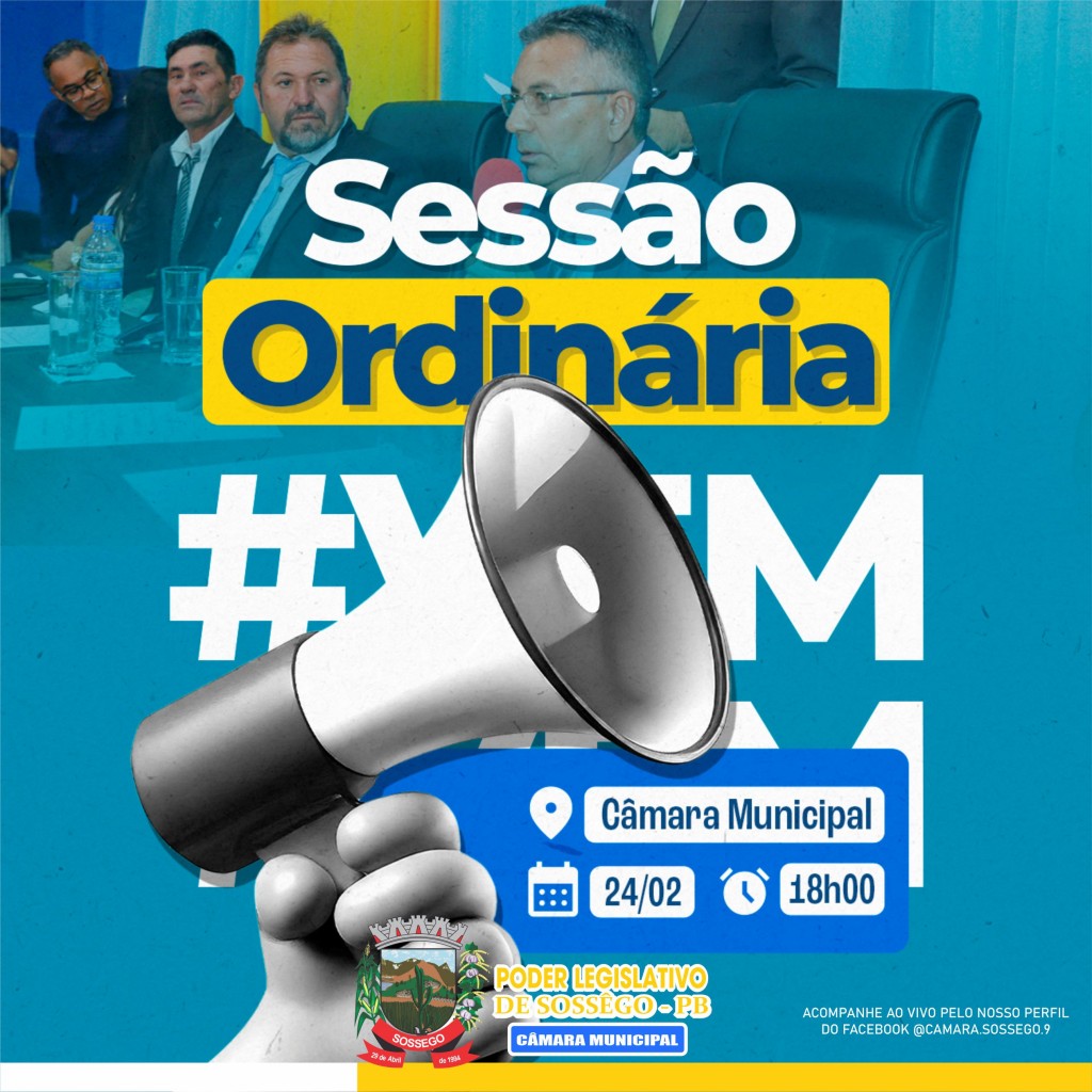 Nesta segunda-feira, 24 de fevereiro tem sessão na Câmara Municipal de Sossêgo. Participe da Sessão Ordinária, um momento de fortalecer o legislativo municipal, com apresentação de pautas importantes para nossa população.