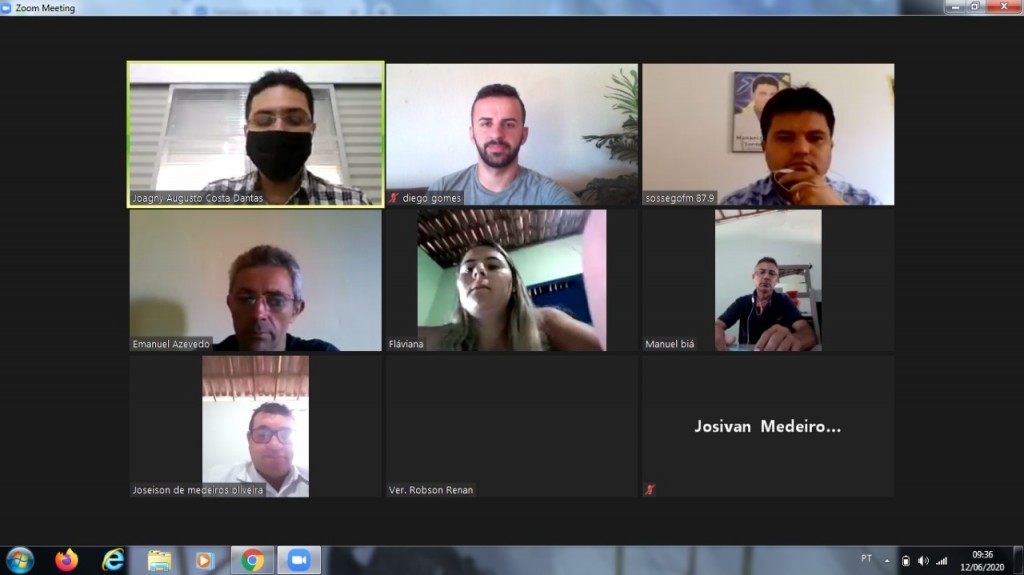 Os vereadores da Câmara Municipal de Sossêgo-PB, realizaram na manhã desta sexta feira, 12, uma reunião preparatória, visando a retomada dos trabalhos do Plenária Antonio Bezerra de Luna, de forma remota. A reunião contou com a participação dos vereadores Manuel Arnaldo da Silva Ferreira, PPS, vice presidente da casa, Diego da Silva Gomes, PPS, 1º Secretário, Joseilson de Medeiros Oliveira, PPS, 2º Secretário, Robson Renan de Oliveira Silva, SD, Emanuel de Azevedo Soares, PSDB, Flaviana Lucena de Araújo, PDT, além do vereador Junior Gomes, PPS, presidente da casa, a reunião também contou com a participação do Assessor Jurídico da Câmara, Dr. Joagnny Augusto.